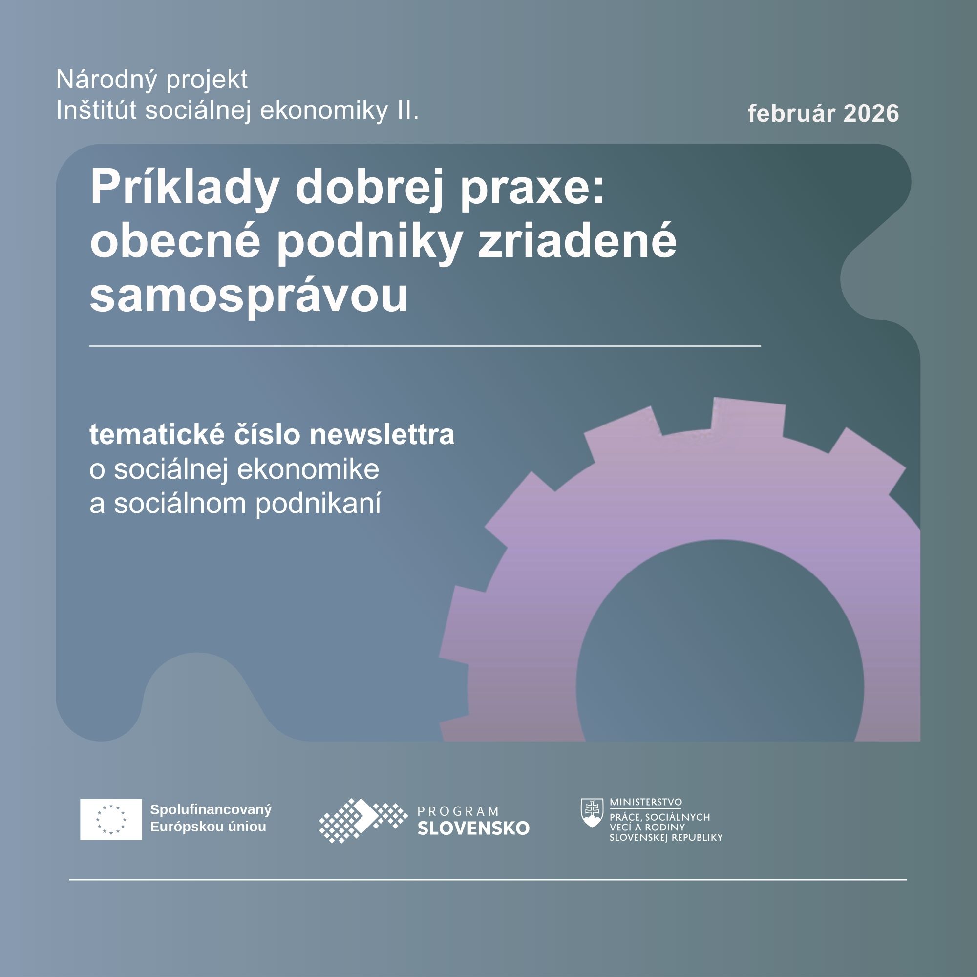 Februárové číslo nášho newslettera je venované téme "obecných sociálnych podnikov". Sociálne podniky zriadené samosprávou predstavujú špecifický fenomén v ekosystéme sociálnej ekonomiky, ktoré predstavujú dynamický nástroj modernizácie obcí, miest a regiónov, ale taktiež sú možnosťou ako vytvárať nové pracovné miesta pre tých, ktorí by si v regióne prácu našli len ťažko (znevýhodnené a zraniteľné osoby). Päť textov vzniklo na základe rozhovorov so starostami, alebo zástupcami vybraných sociálnych podnikov: Obecné Služby Boldog, Mestský podnik Snina, Obecné služby Nová Bošáca s.r.o., Služby Cífer s.r.o. a Obecný podnik Zborov nad Bystricou s.r.o.